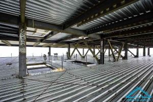 سقف عرشه فولادی با ورق های گالوانیزه ذوزنقه‌ای شکل آجدار بدون استفاده از شمعك و حذف قالب بندی اجرا می‌شود. وزن این سقف نسبت به سقف های مشابه حدود 30 تا 60 درصدکمتر می باشد و سرعت اجرای این سقف حدود 11 برابر بیشتر از سقف‌های معمولی مانند دال بتنی و تیرچه بلوک می‌ باشد.